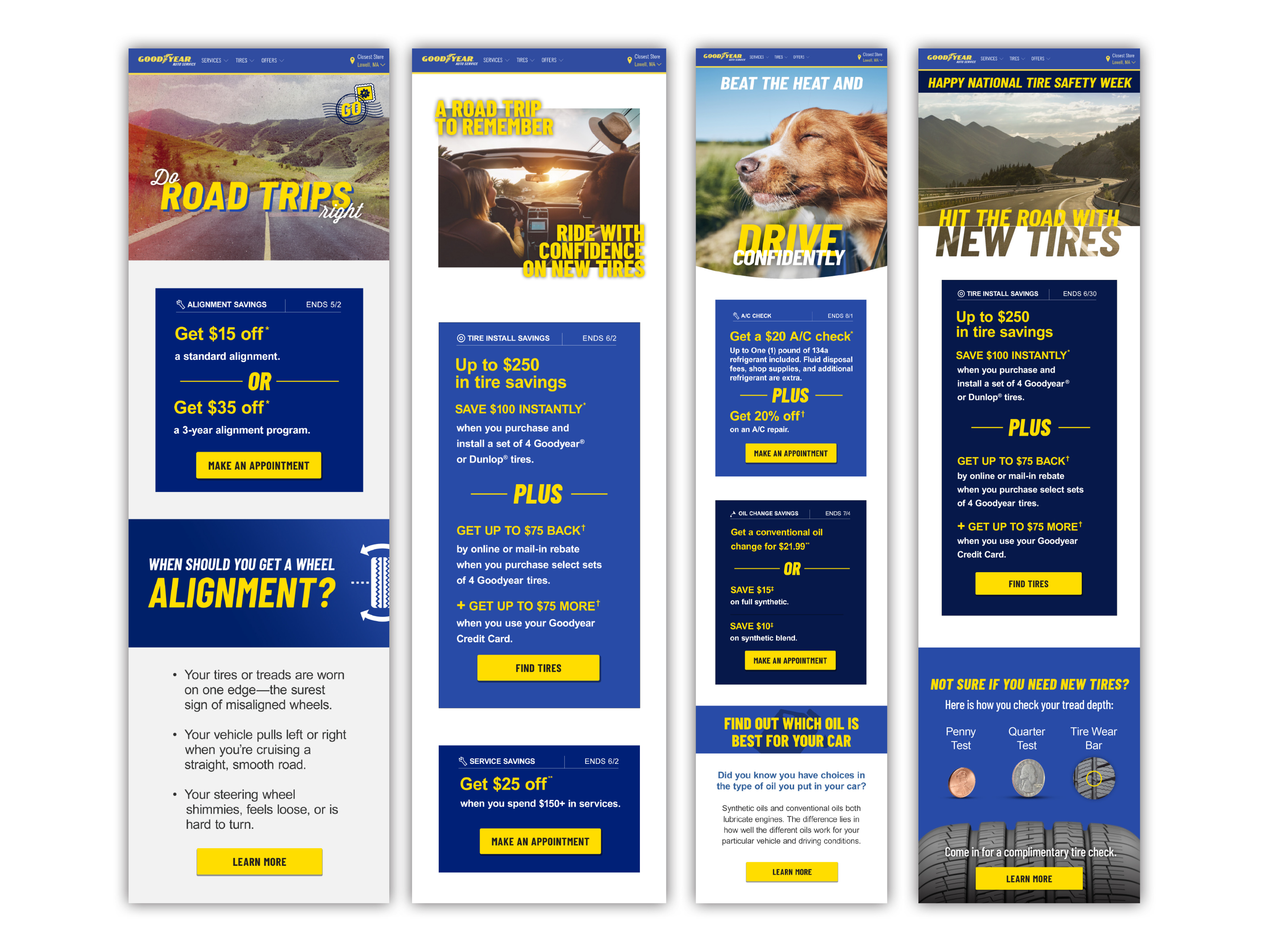 At Boathouse, I shifted Goodyear into high gear. Their marketing needed a modern upgrade to reach younger drivers. I spearheaded revamping their emails for better engagement, with a fresh, modern look. But it wasn't just emails – I designed flyers, social media graphics, and in-store signage, all keeping pace with seasonal campaigns.